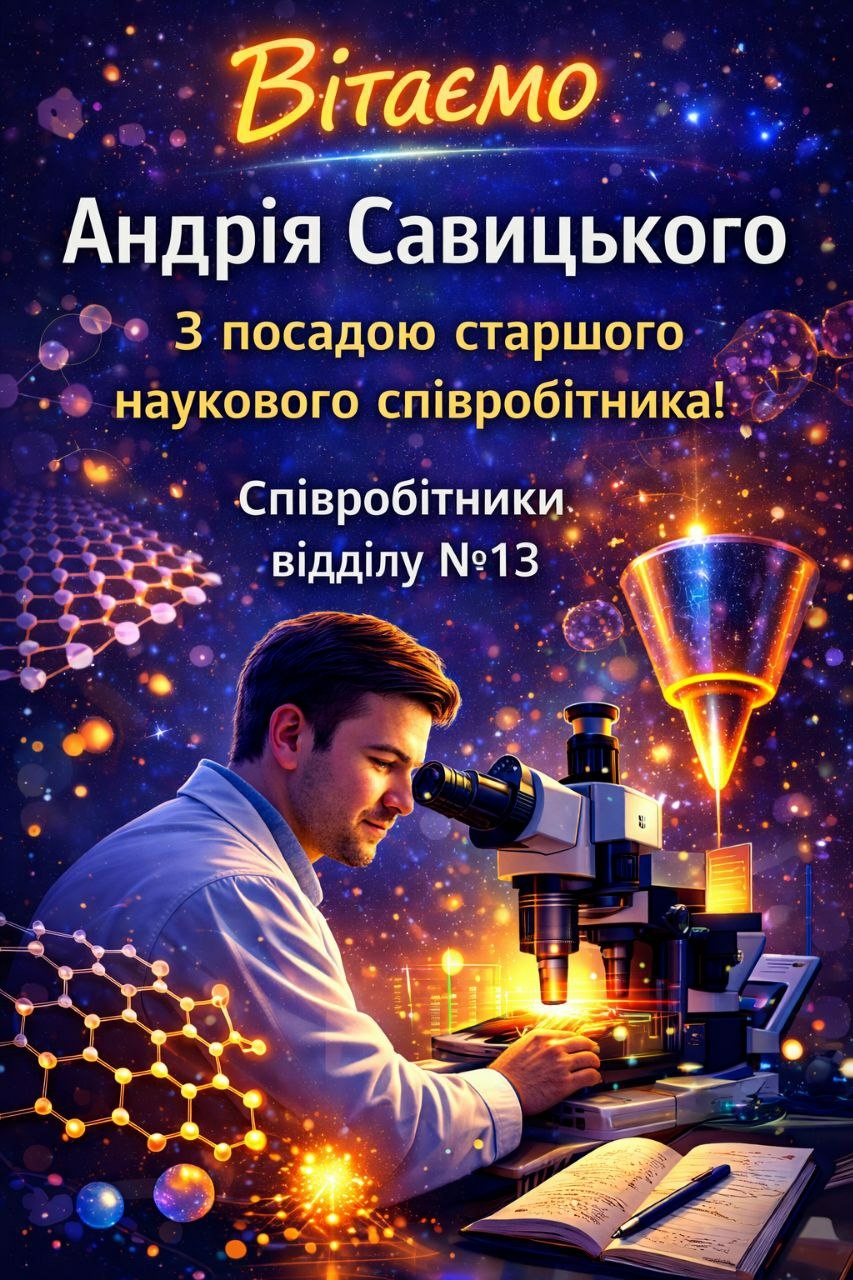 Вітаємо Савицького Андрія Володимировича з обранням на посаду старшого наукового співробітника! Бажаємо нових творчих досягнень.